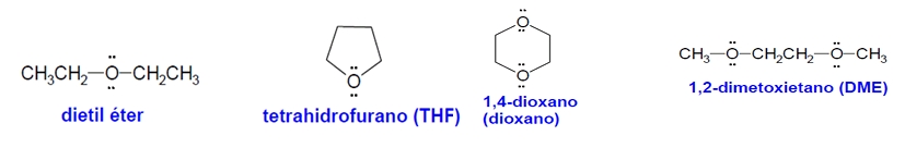 Una de las aplicaciones más importantes de los éteres es su empleo como disolventes en las reacciones orgánicas. Los más empleados son el dietil éter, y el tetrahidrofurano.